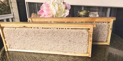 Our honey is collected from honeycombs that are on bee frames. The majority of the comb is recycled into our candles or given back to the bees. However, we offer packed honeycomb inside select glass jar sizes for anyone who likes the comb. Whether you like the comb for taste or nostalgia, you may purchase it here.